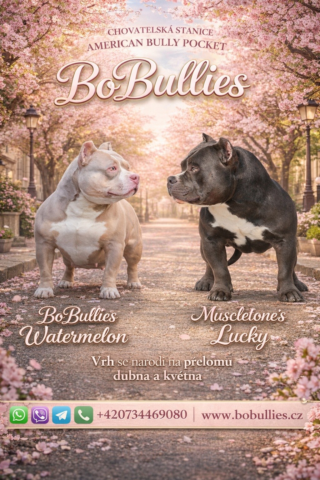 Aktuálně vám v chovatelské stanici BoBullies očekáváme štěňátka american bully pocket s registrací ABKC po naší královně matce BoBullies Watermelon a překrásném mladém psovi Muscletone's Luckym